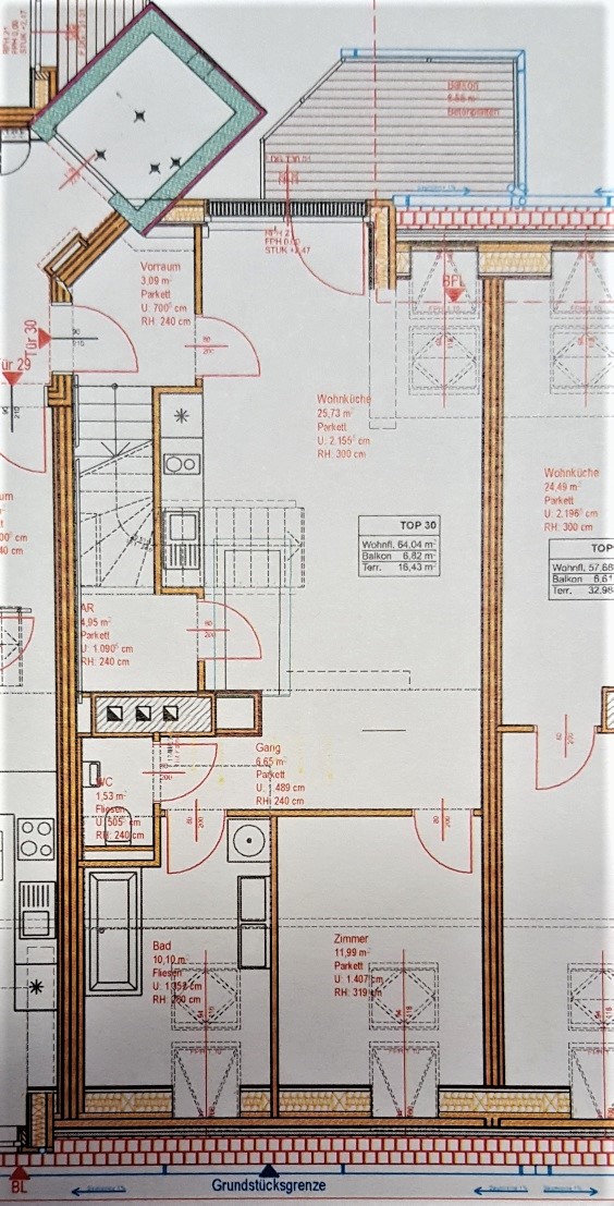 Vorraum, Bad, Wc, Wohn/Küche, Zimmer, Abstellraum, Balkon, Dachterrasse