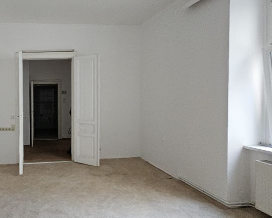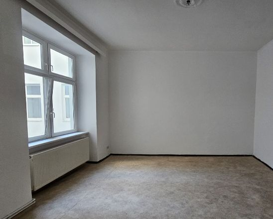 Ruhige sowie hofseitig gelegene Altbaumiete, Kat.B, unbefristete Vermietung, Vorraum, Küche mit Duschnische, 2 separat begehbare Zimmer, PVC- Böden, Etagenheizung, neue Elektrik